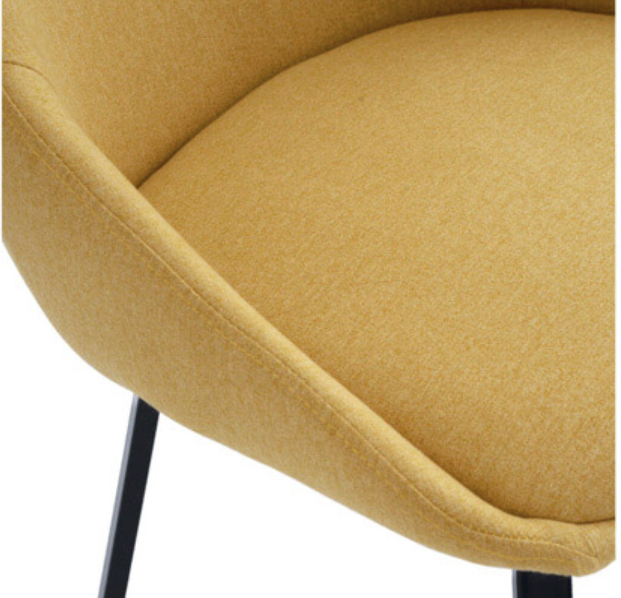 Optez pour le confort et le style avec notre chaise pivotante à 180º, dotée d'un retour automatique. Recouverte d'un tissu rembourré, cette chaise allie esthétique et fonctionnalité, avec des pieds en métal noir pour une stabilité optimale. Disponible en trois coloris - jaune, gris clair et gris foncé - elle s'adapte à tous les goûts et styles de décoration. Largeur totale : 52 cm Profondeur totale : 57,50 cm Hauteur totale : 84 cm Hauteur sol-assise : 50 cm Hauteur des accoudoirs au sol : 60 cm Hauteur du dossier : 39 cm Largeur du dossier : 41 cm Largeur d'assise : 42 cm Profondeur d'assise : 44 cm Hauteur des accoudoirs : 15 cm Mesure entre les pieds avant : 38 cm Mesure entre les pieds latérales : 38 cm Poids supporté : 120 kg Poids : 6,10 kg Dimensions de l'emballage : 62 x 53 x 50 cm La chaise offre un confort optimal avec sa rotation à 180º et son retour automatique. Les dimensions bien pensées garantissent une assise spacieuse et confortable, avec une hauteur d'assise idéale de 50 cm. Les pieds en métal noir assurent une stabilité robuste, supportant un poids allant jusqu'à 120 kg. Avec ses lignes modernes et épurées, cette chaise est un ajout polyvalent à tout espace, que ce soit dans un bureau, une salle à manger ou un coin salon. Le poids léger de 6,10 kg facilite son déplacement, et les dimensions de l'emballage de 62 x 53 x 50 cm en font un choix pratique à livrer et à assembler. Redéfinissez votre espace avec cette chaise pivotante à la fois élégante et fonctionnelle. Option(s) sélectionnée(s) : - Couleur : Jaune curry