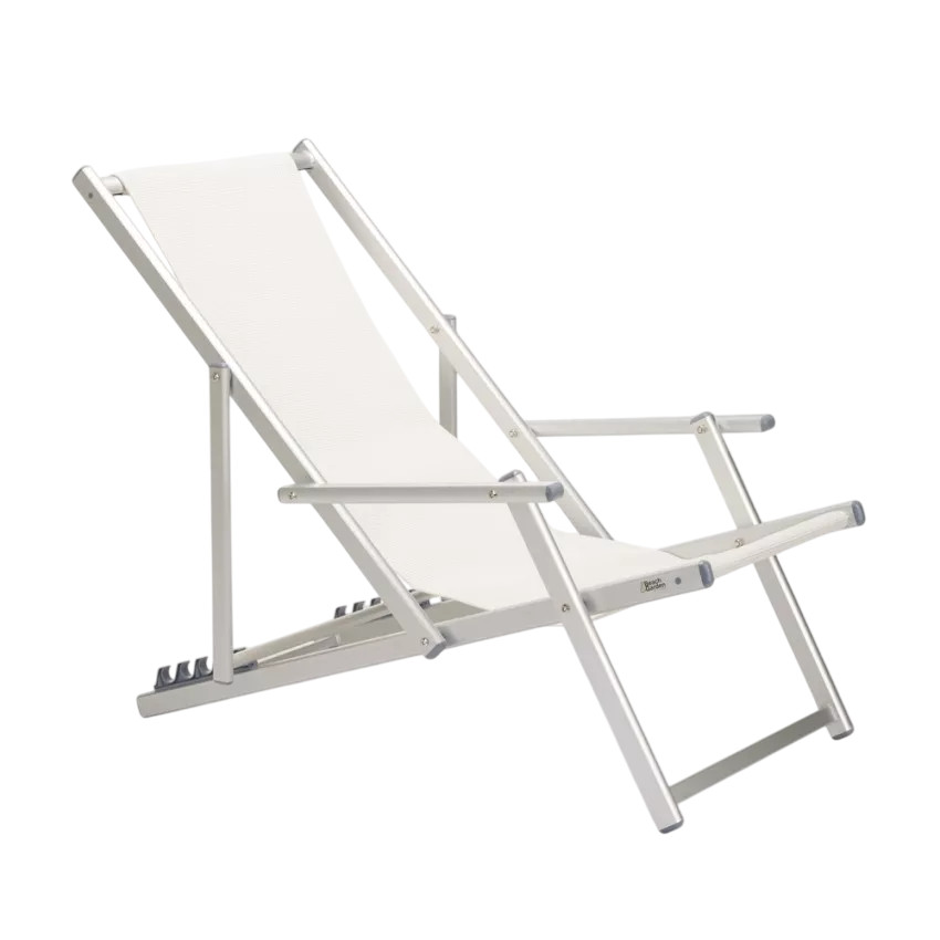 Chaise longue pliante avec accoudoirs pour plage, jardin et camping.