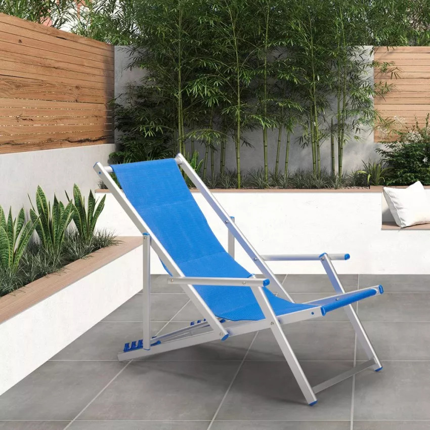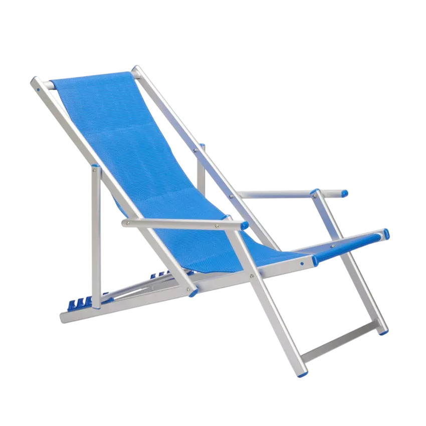 Chaise longue pliante avec accoudoirs pour plage, jardin et camping.