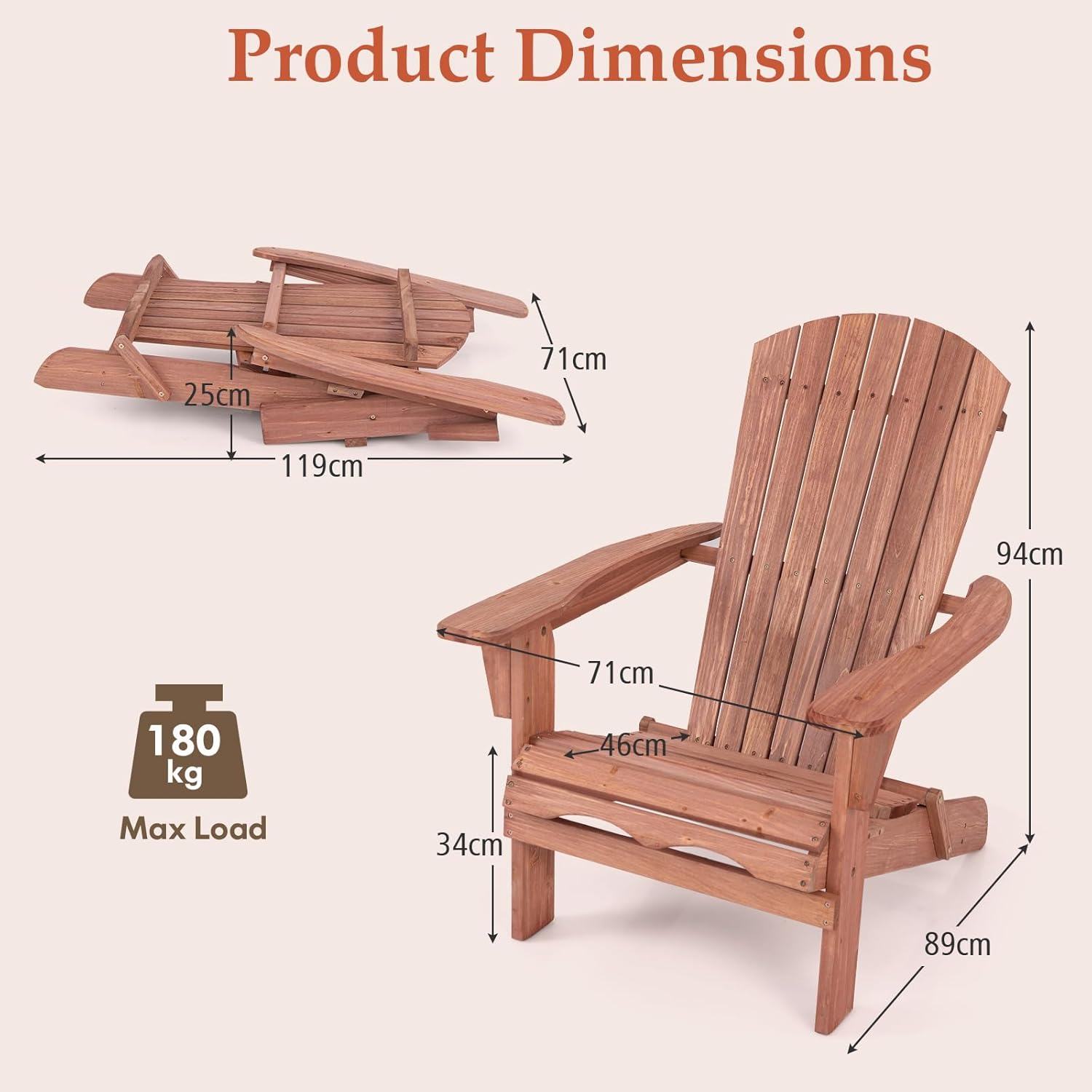 - Solidité en bois de sapin : fabriquée en bois de sapin de haute qualité et finie avec une peinture protectrice, cette chaise de feu assure stabilité et résistance dans le temps. Avec une capacité de charge jusqu'à 180 kg, il est idéal pour une utilisation durable en plein air.