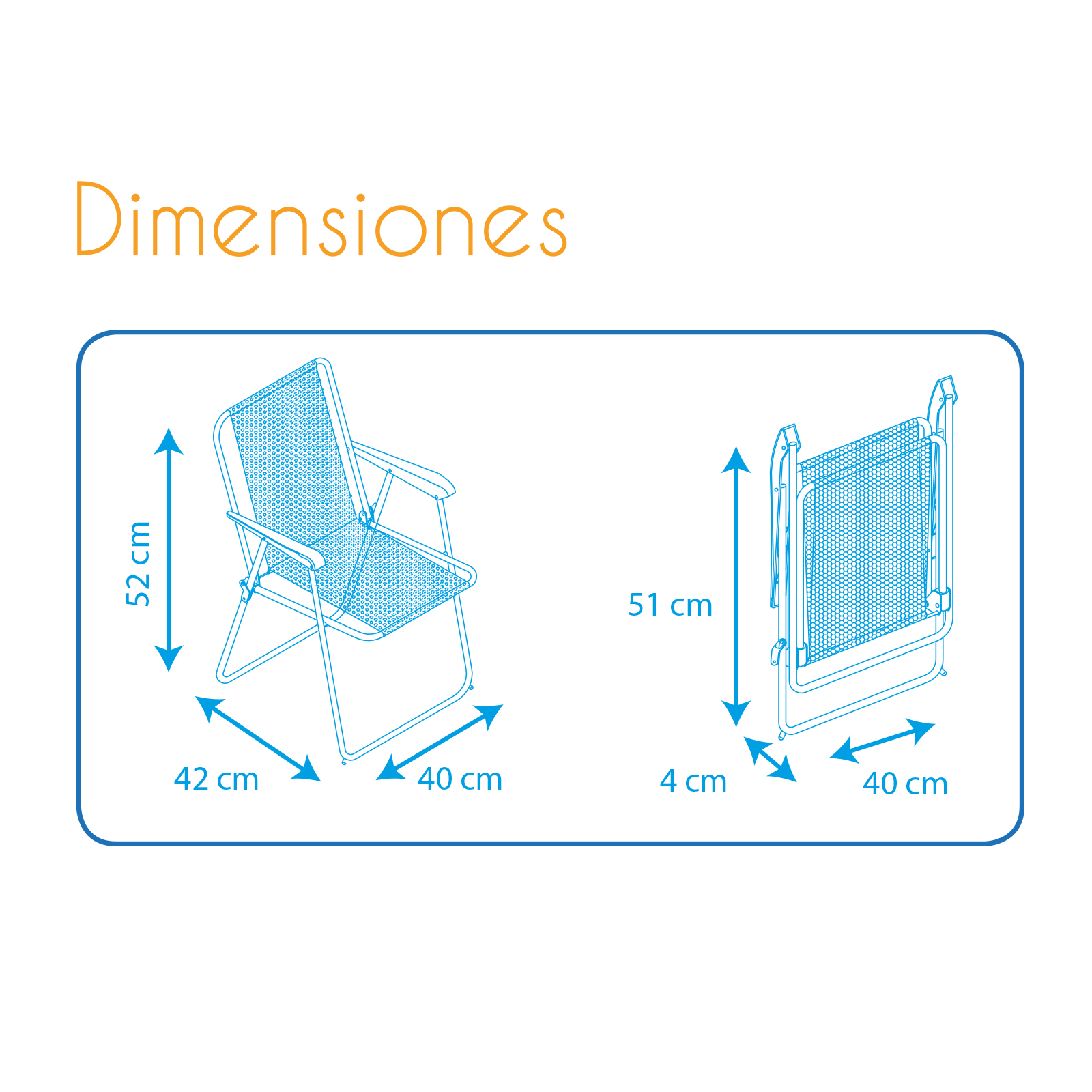 Chaise conçue pour le jardin ou le camping pour les plus petits de la maison, dotée d'un mécanisme de pliage sécurisé et de pieds stabilisateurs pour un meilleur maintien. Elle est fabriquée en tubes d'acier peints en époxy qui évitent la corrosion et dispose d'un rembourrage de 1 cm pour plus de confort. Elle a un design amusant avec des motifs colorés pour le plaisir des petits de la maison dans leurs excursions. Emmenez votre chaise où vous voulez grâce à son pliage facile et à sa légèreté. Caractéristiques : - Pour 1 personne. - Utilisation en extérieur. - Couleur: bleu et vert. - Tubes d'acier. - Dimensions: 42x40x52 cm. - Matériel: tissu 100% polyester avec rembourrage en mousse de polyester. - Rembourrage: 1 cm. - Poids maximum supporté: 40 kg. - Stabilisation des pieds. - Poids: 1,3 kg.
