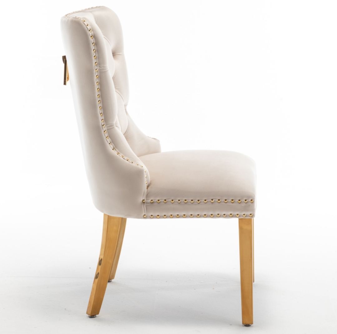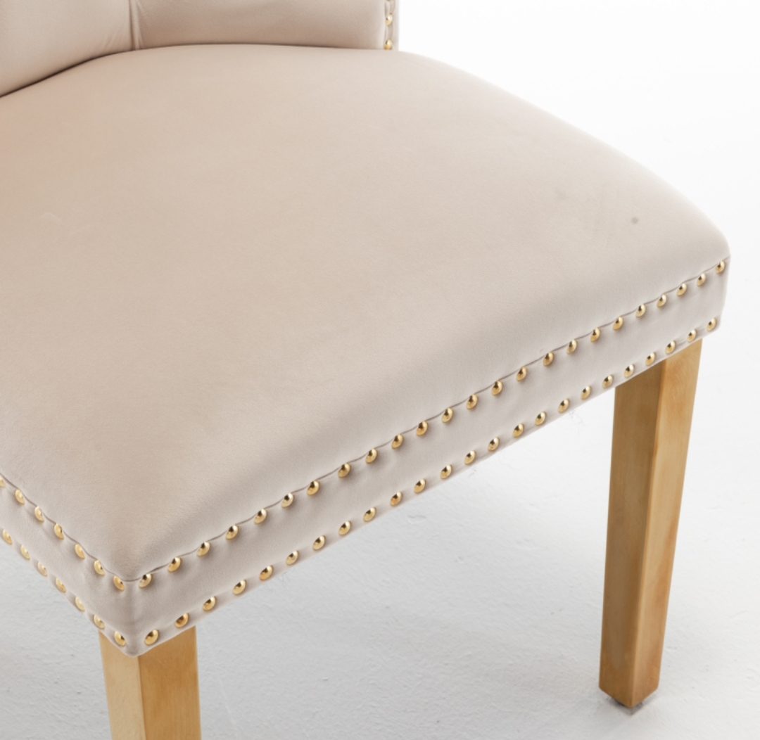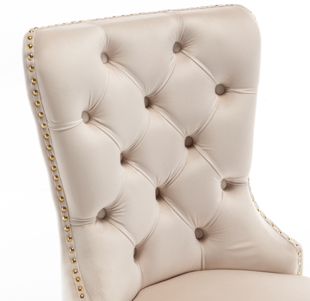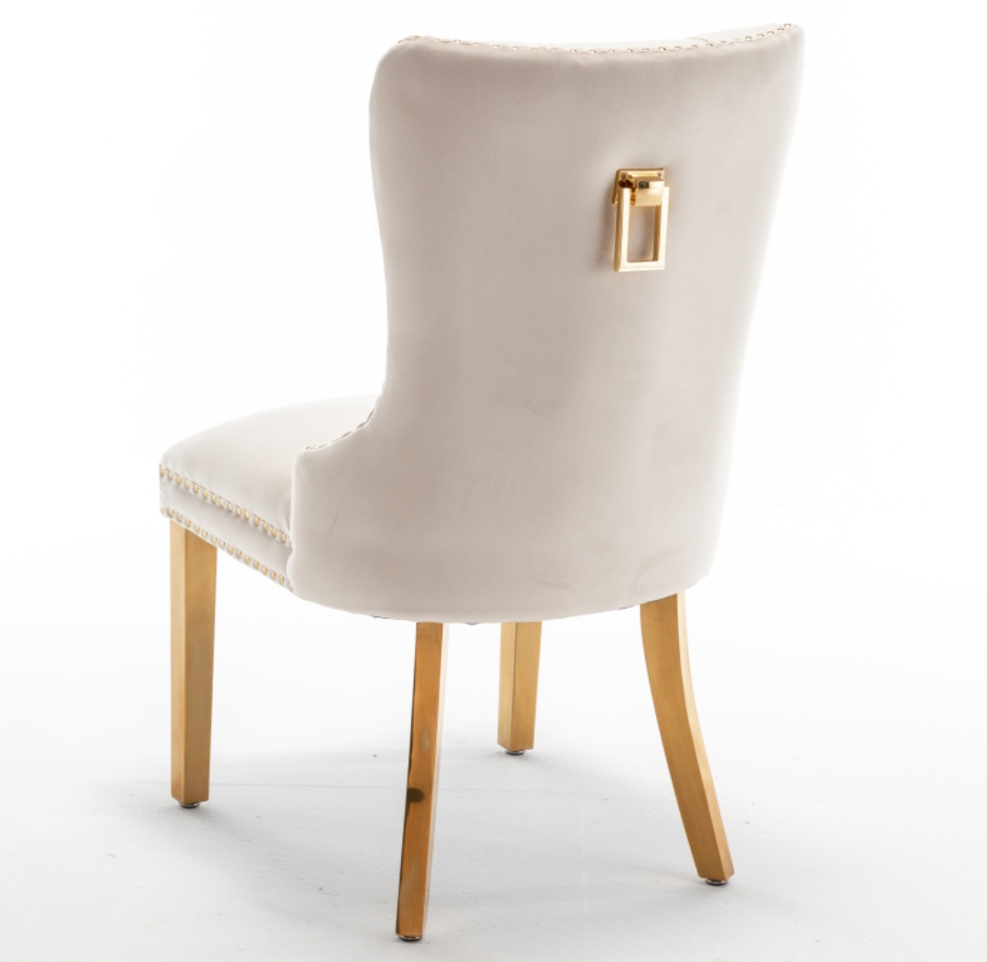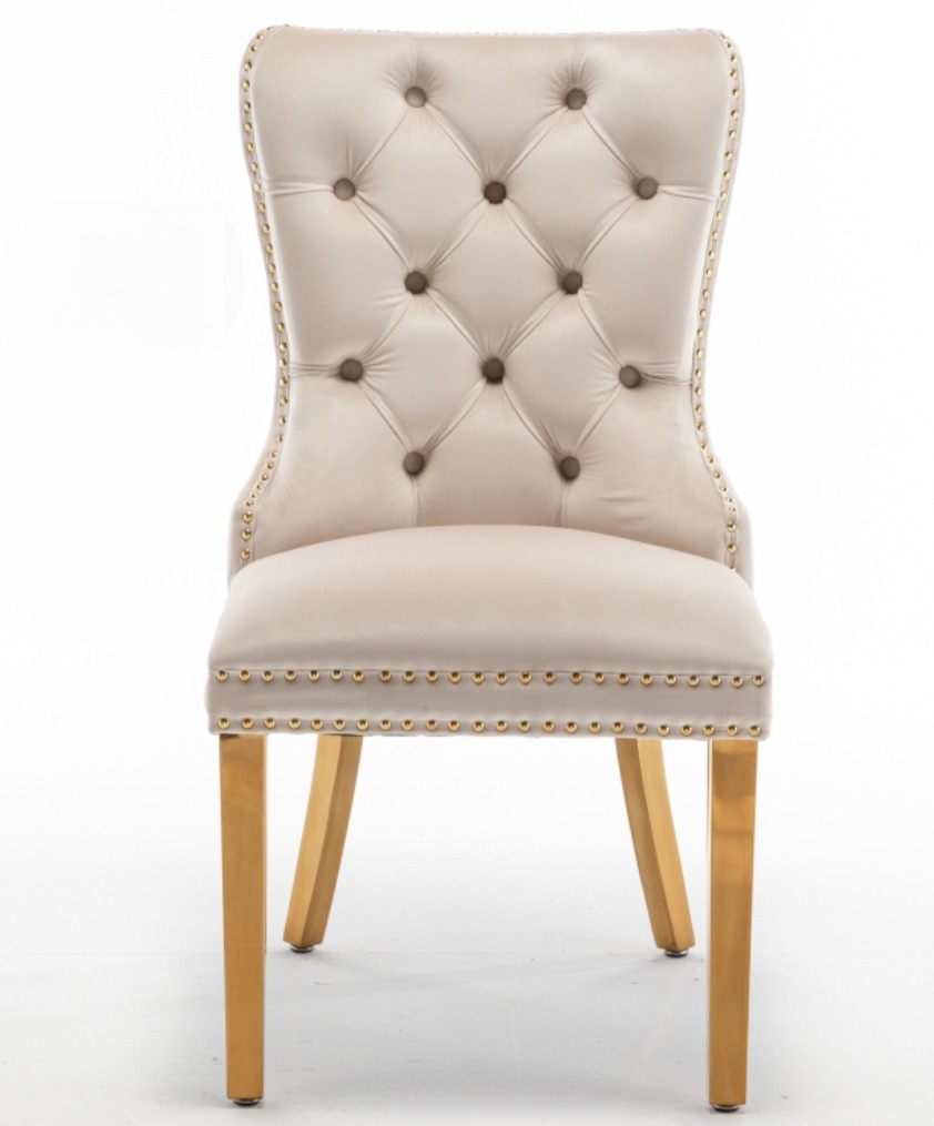 | Libellé | Chaise poignée rectangulaire velours capitonné beige clair et pieds acier doré Kazar - Lot de 2 |