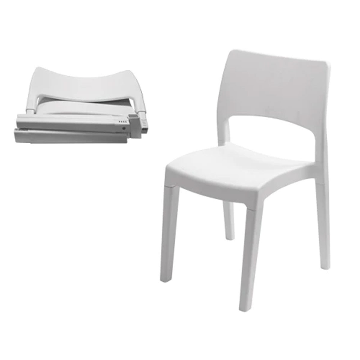 Caractéristiques de la chaise blanche Klik Klak empilable et démontable.