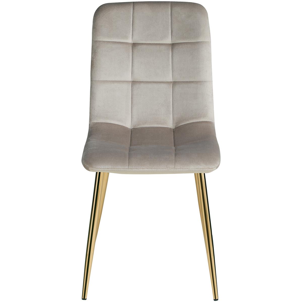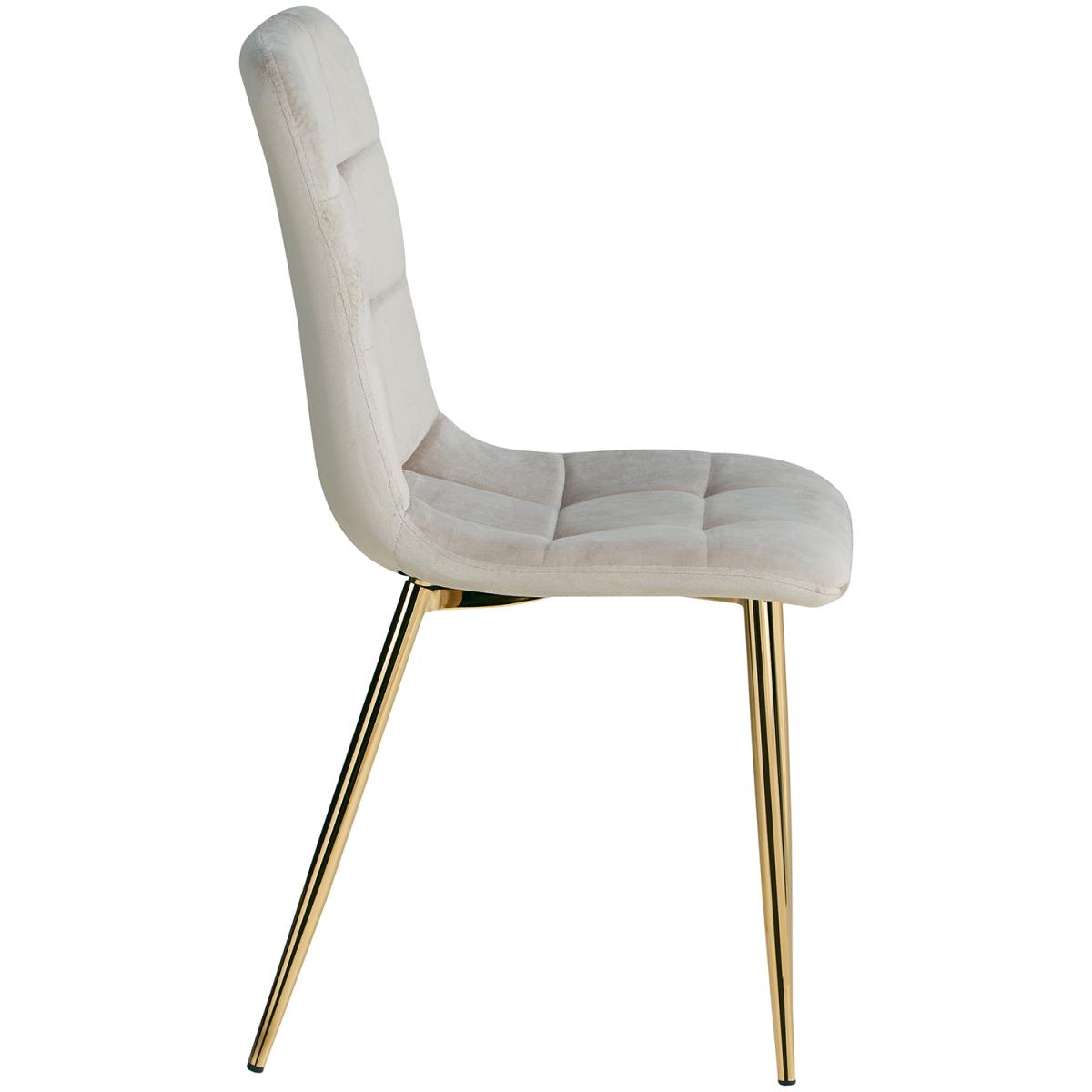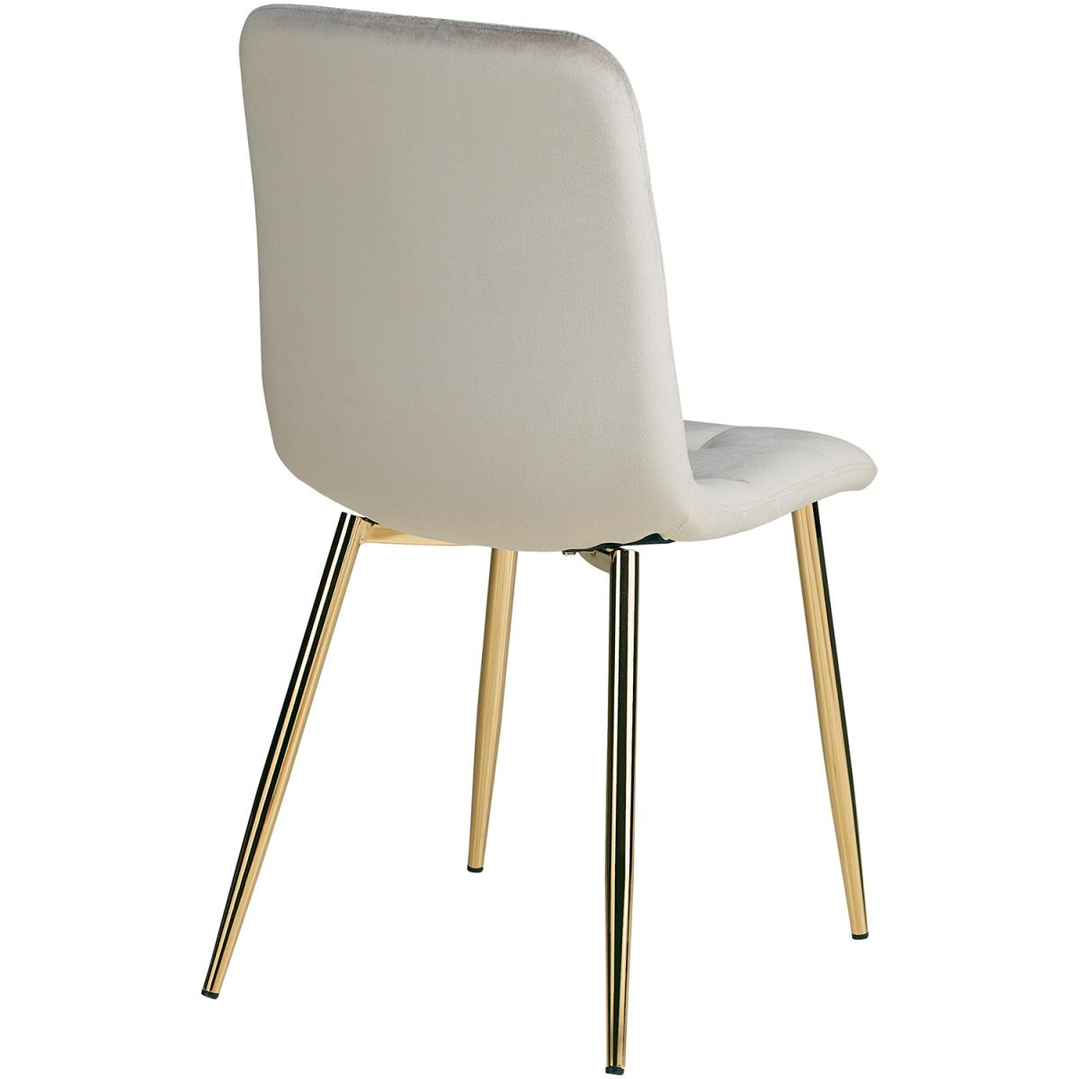 Prenez place sur notre confortable chaise de salle à manger et savourez vos repas et vos boissons en compagnie de vos proches. Cette chaise de cuisine moderne est le complément parfait de nos tables à manger. L'assise et le dossier sont recouverts de velours crème noble et garantissent une assise toujours confortable. Les pieds métalliques massifs en acier revêtu de or confèrent à la chaise rembourrée une assise stable et sûre.