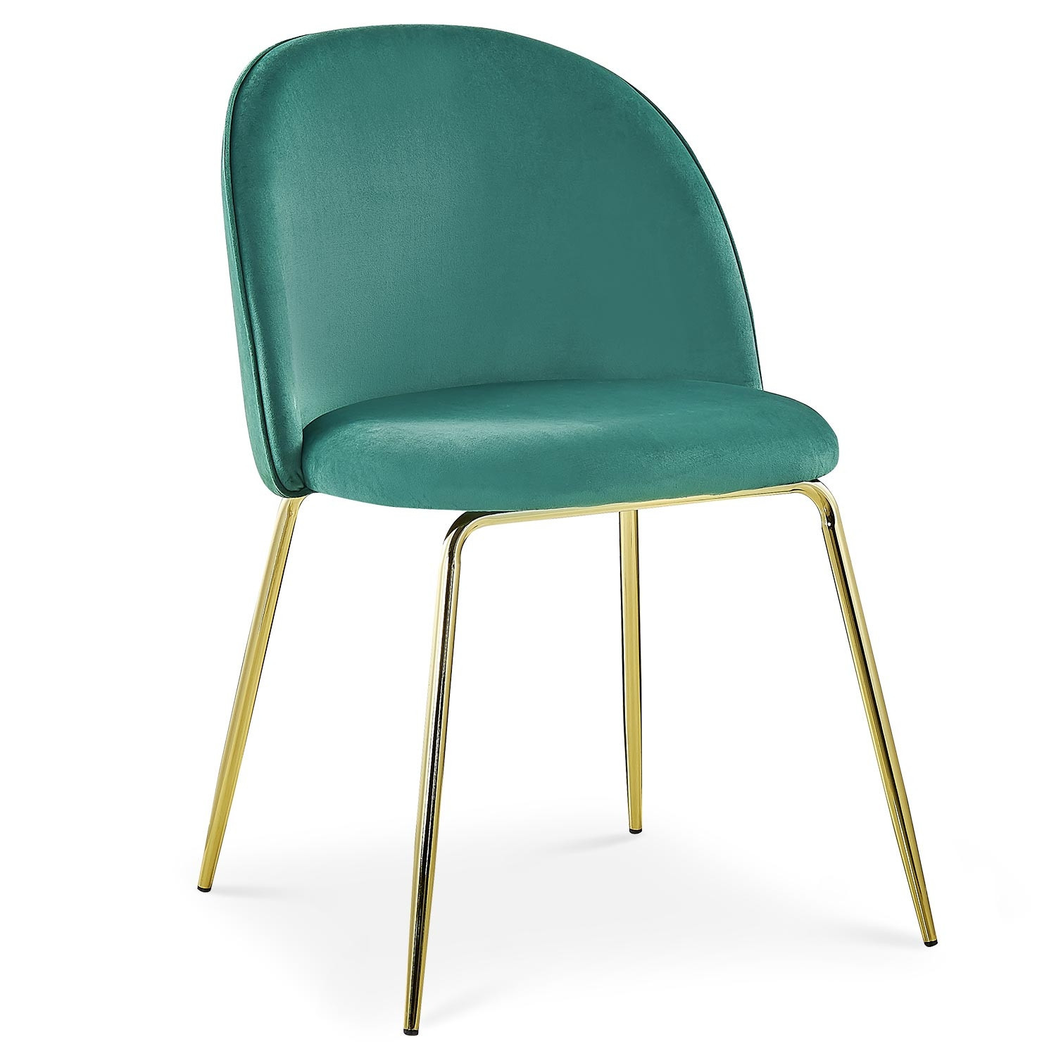 Chaise velours vert et pieds métal doré Alexa - Lot de 2