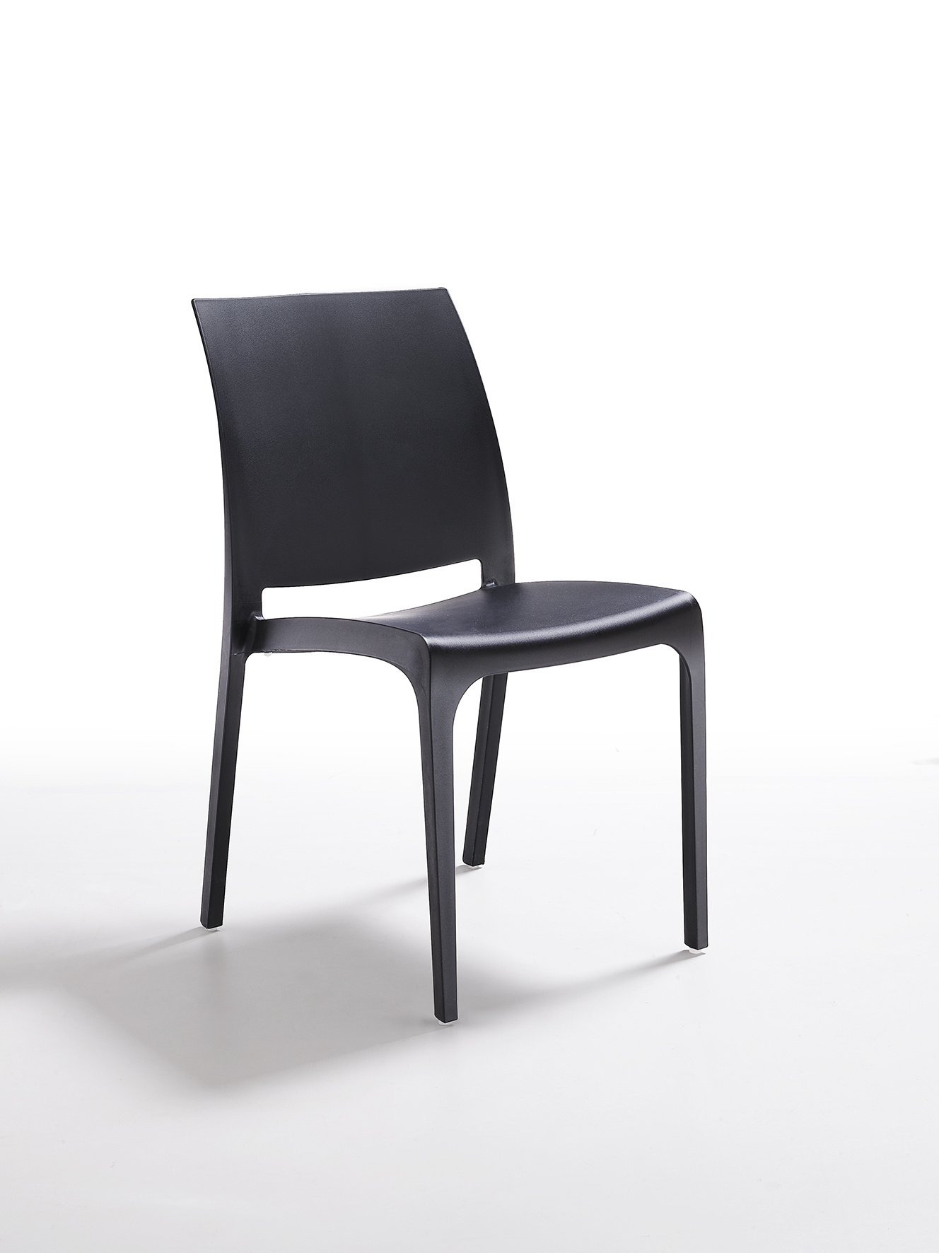 Chaise VOLGA Graphite 46x54x80 cm Polypropylène+CaCO3+Fibre de Verre Monobloc empilable