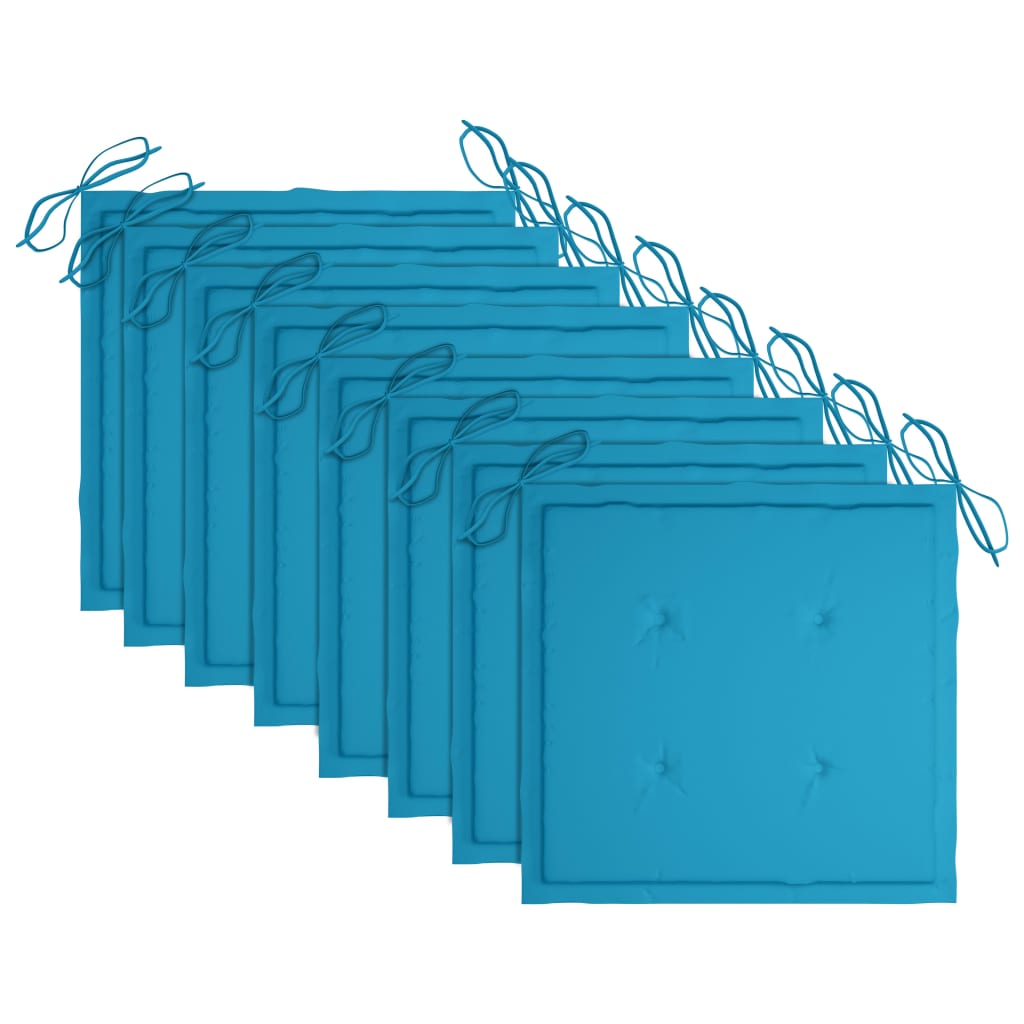 Ajoutez du confort supplémentaire dans votre espace extérieur avec cet ensemble de chaises de jardin en bois. Il est parfait pour bavarder en famille et entre amis ou tout simplement profiter des bains de soleil apaisants ! Cet ensemble de chaise d'extérieur est fait de bois d'acacia massif avec une finition lavée grise, qui est un bois dur à grains denses. Le bois d'acacia massif a également la force de supporter le poids et de résister à l'usure du temps. Cet ensemble de chaises en bois est stable, durable et résistant aux intempéries. De plus, la surface de la chaise est facile à nettoyer avec un torchon humide. Les coussins inclus offrent un confort supplémentaire. Remarque: Afin de prolonger la durée de vie de vos meubles d'extérieur, nous vous recommandons de les nettoyer régulièrement et de ne pas les laisser à l'extérieur sans protection inutilement.Nettoyage : Utiliser une solution savonneuse douceStockage : Si possible, stockez dans un endroit frais et sec à l'intérieur. Si le produit est stocké à l'extérieur, protégez-le avec une housse imperméable. Essuyez et séchez l'excès d'eau ou de neige des surfaces planes après la pluie ou une chute de neige. Permettez une circulation d'air suffisante afin d'éviter les dommages liés à l'humidité. Couleur du coussin : Bleu Couleur de la chaise : gris Matériau de la chaise : bois d'acacia massif Matériau du coussin : tissu (100 % polyester) Dimensions de la chaise : 61 x 57 x 92 cm (l x P x H) Dimension du siège : 48 x 46 cm (l x P) Hauteur du siège à partir du sol : 43,5 cm Dimensions du coussin : 50 x 50 x 4 cm (L x l x é) Chaque coussin comprend 2 jeux de cordes L'assemblage est requis La livraison contient : 8 x chaise 8 x coussin