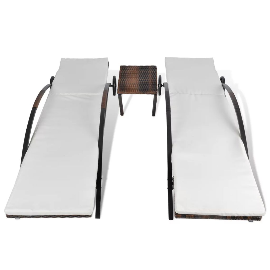 Libellé Chaises longues avec table Résine tressée Marron 2