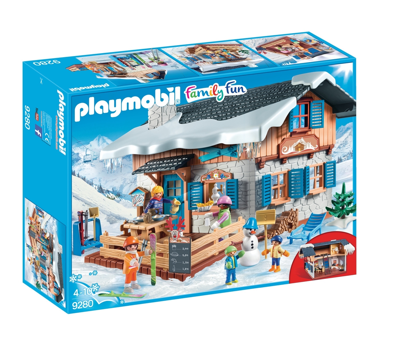 Génial ! Le chalet de ski est équipé d'une cheminée, d'un espace pour les repas, d'un espace repos avec toilettes, des porte-skis, une terrasse, des skis et bien plus encore. Contient cinq personnages, un bonhomme de neige et de nombreux accessoires.