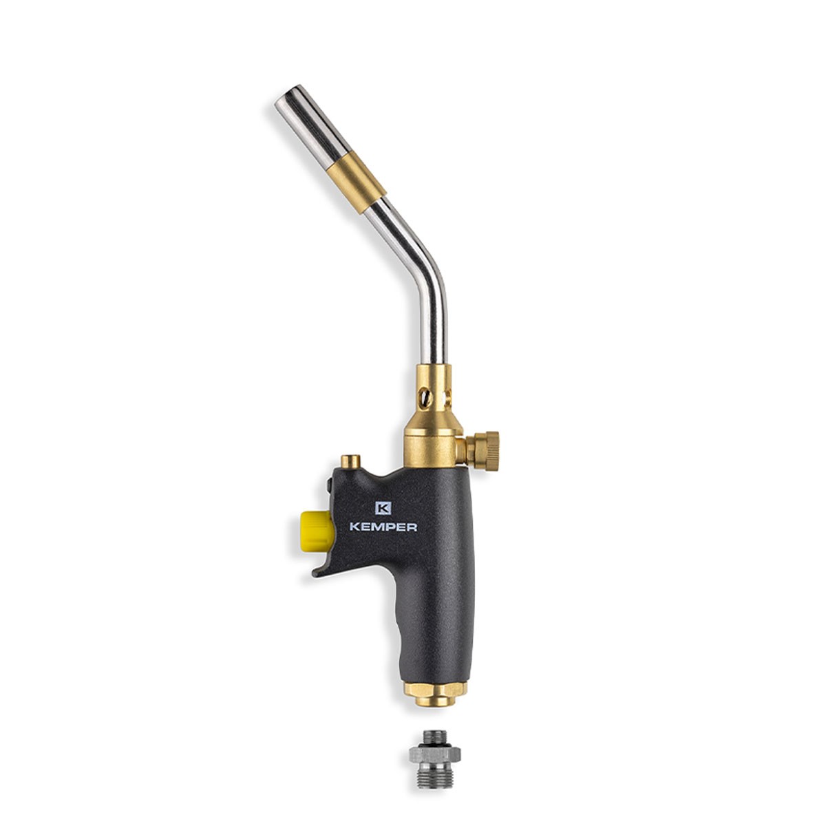 Le chalumeau à gaz professionnel KEMPER avec allumage piezo est conçu avec un design ergonomique, un corps en aluminium léger et robuste.