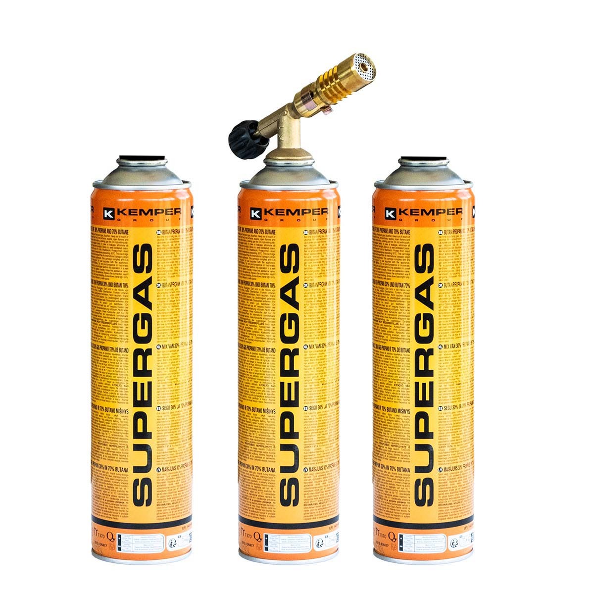 Chalumeau de soudure à gaz Flamme + 3 Cartouches de gaz 330gr KEMPER