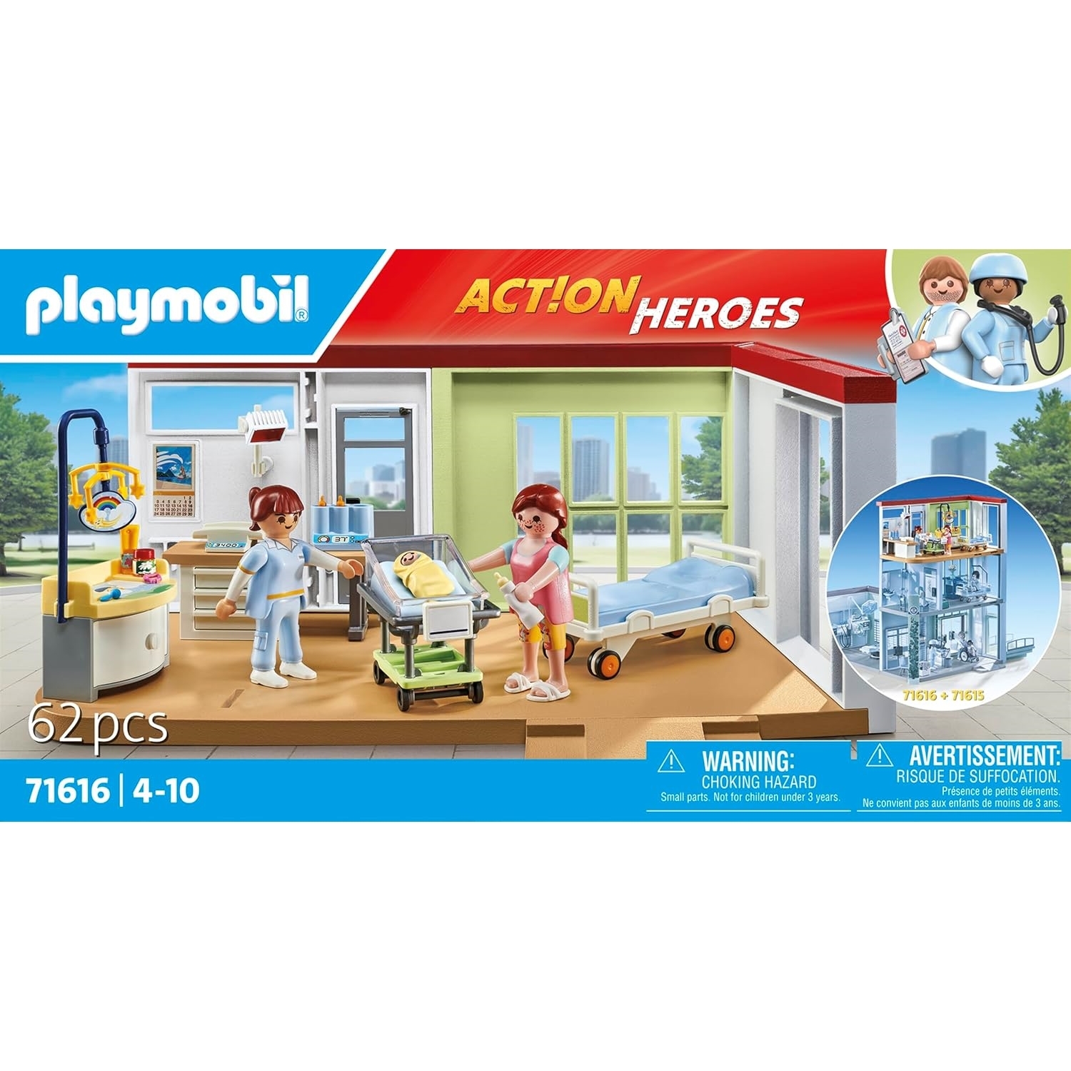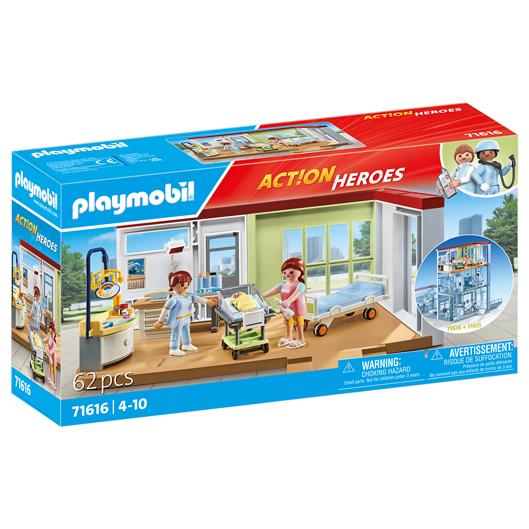 Ne vous en faites pas, vous êtes entre de bonnes mains ! Comprend deux personnages, une maternité entièrement équipée qui peut se rattachée à l'hôpital et des accessoires.