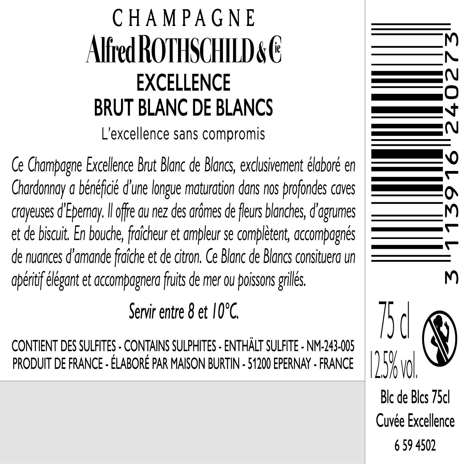| Libellé | Champagne Alfred Rothschild & Cie - Brut Blanc de Blancs - 75 cl |