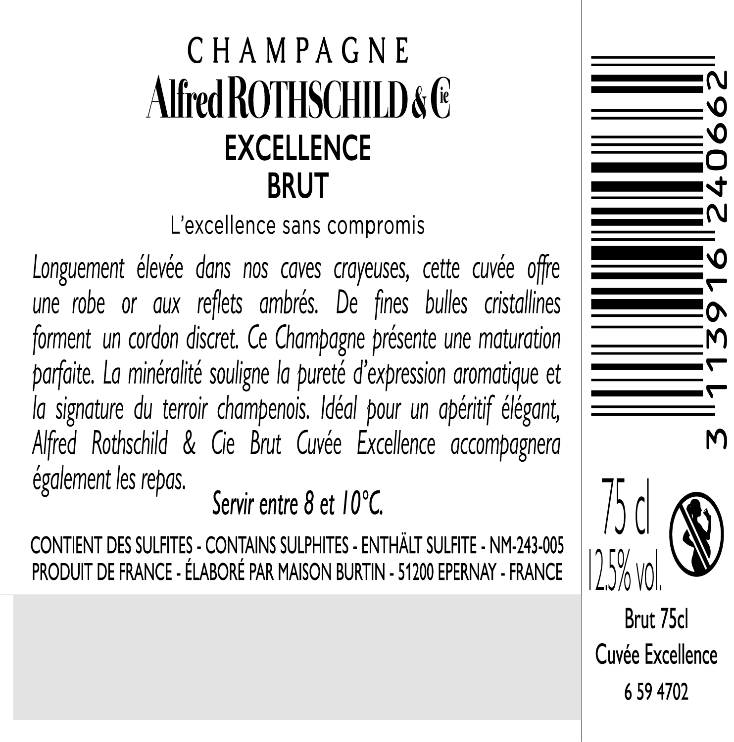 | Libellé | Champagne Alfred Rothschild & Cie Excellence - Brut - 75 cl |