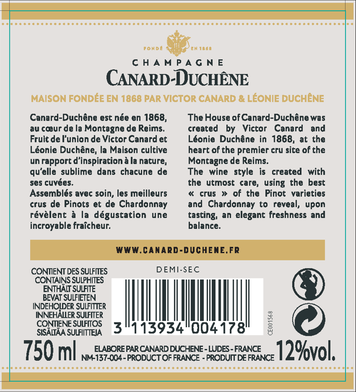| Libellé | Champagne Canard-Duchêne - Demi-sec - 75 cl |