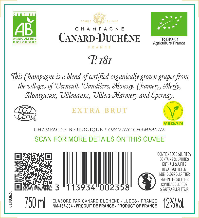 | Libellé | Champagne Canard-Duchêne P. 181 BIO - Extra-Brut - 75 cl |