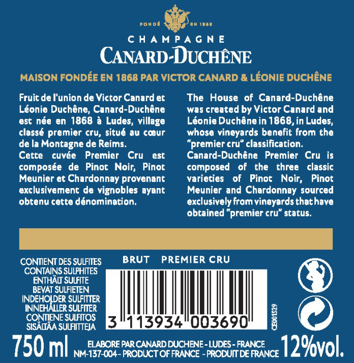 | Libellé | Champagne Canard-Duchêne Premier Cru - Brut - 75 cl |