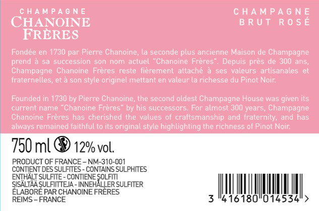 | Libellé | Champagne Chanoine Frères - Brut Rosé - 75 cl |