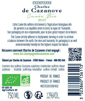 | Libellé | Champagne Charles de Cazanove BIO - Brut - 75 cl |