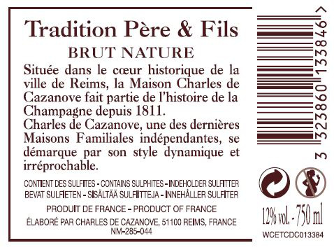 | Libellé | Champagne Charles de Cazanove Brut Nature - Brut - 75 cl |