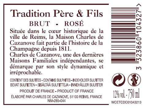 | Libellé | Champagne Charles de Cazanove - Brut Rosé - 75 cl |