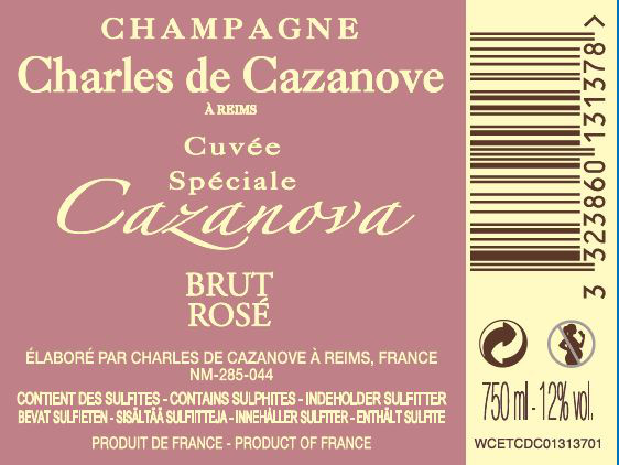 | Libellé | Champagne Charles de Cazanove Spéciale Cazanova - Brut Rosé - 75 cl |
