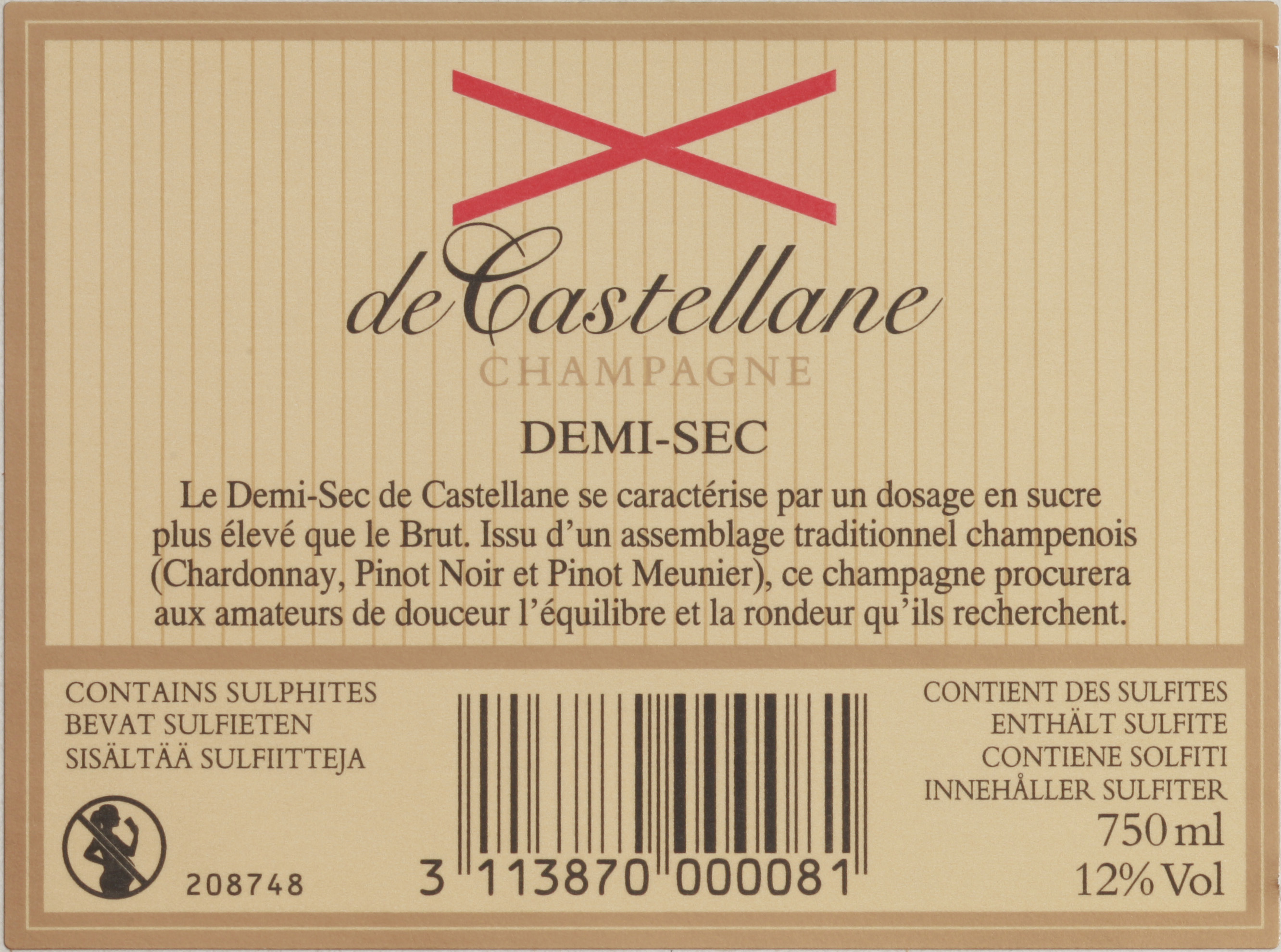 | Libellé | Champagne de Castellane - Demi-sec - 75 cl |