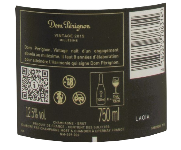 | Libellé | Champagne Dom Perignon Vintage - Brut, 2015 - 75 cl |