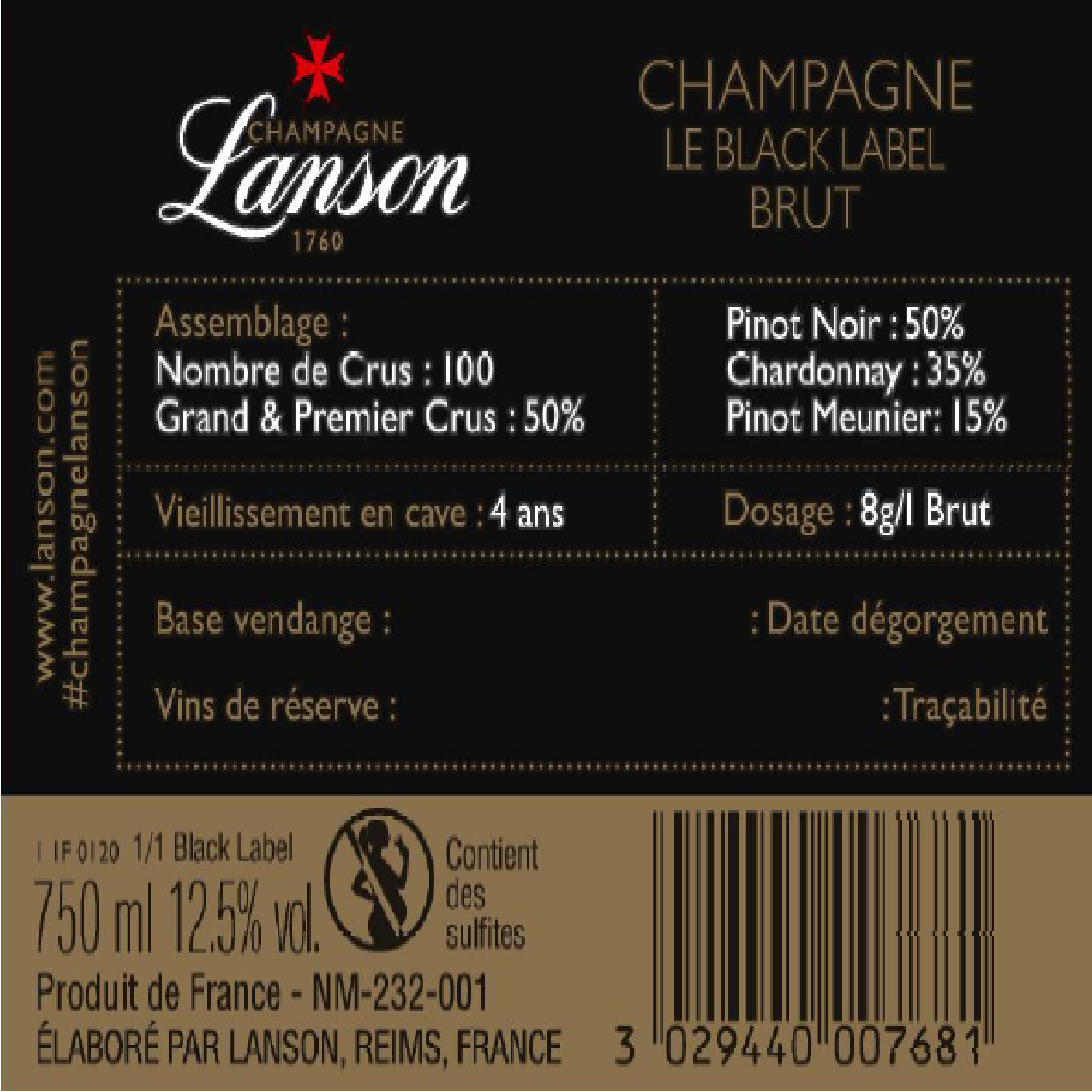 | Libellé | Champagne Lanson Black Label - Brut - 75 cl |