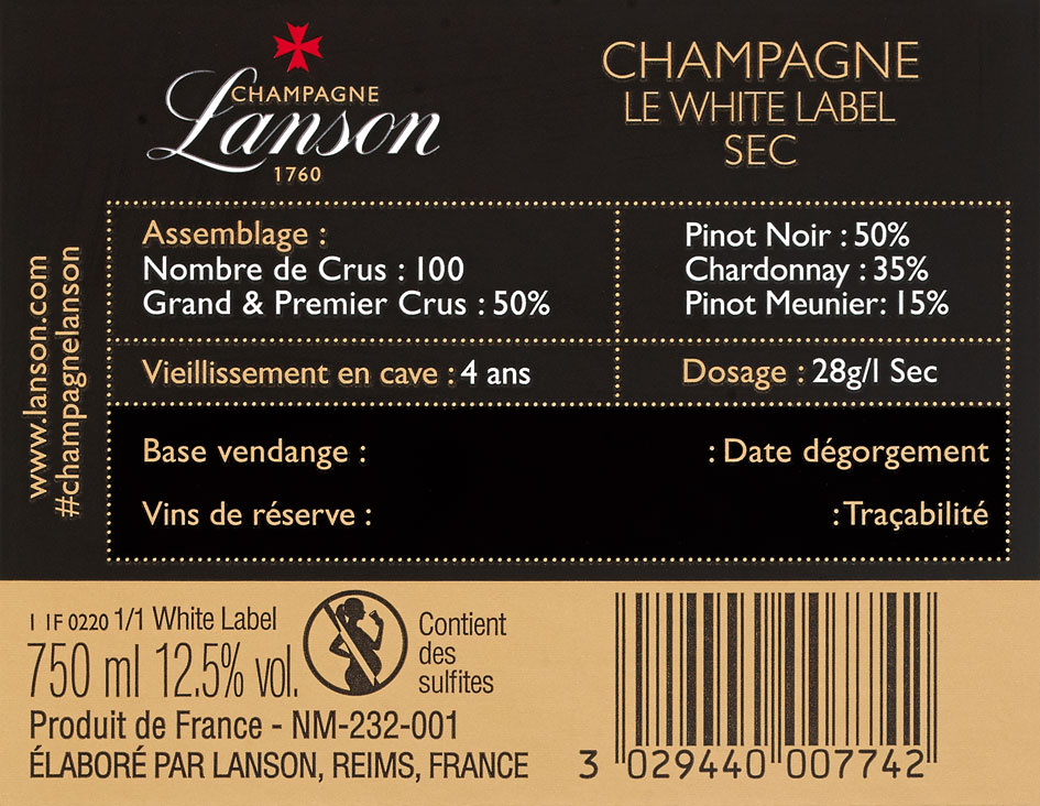 | Libellé | Champagne Lanson White Label - Demi-sec - 75 cl |