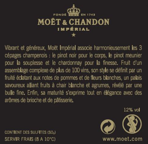 | Libellé | Champagne Moët & Chandon - Brut - 75 cl |