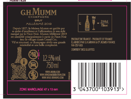 | Libellé | Champagne Mumm - Brut, 2019 - 75 cl |