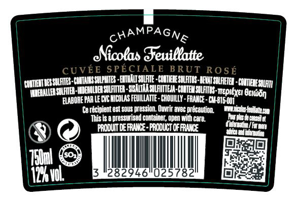| Libellé | Champagne Nicolas Feuillatte Cuvée Spéciale - Extra-Brut Rosé - 75 cl - étiquette abîmée |