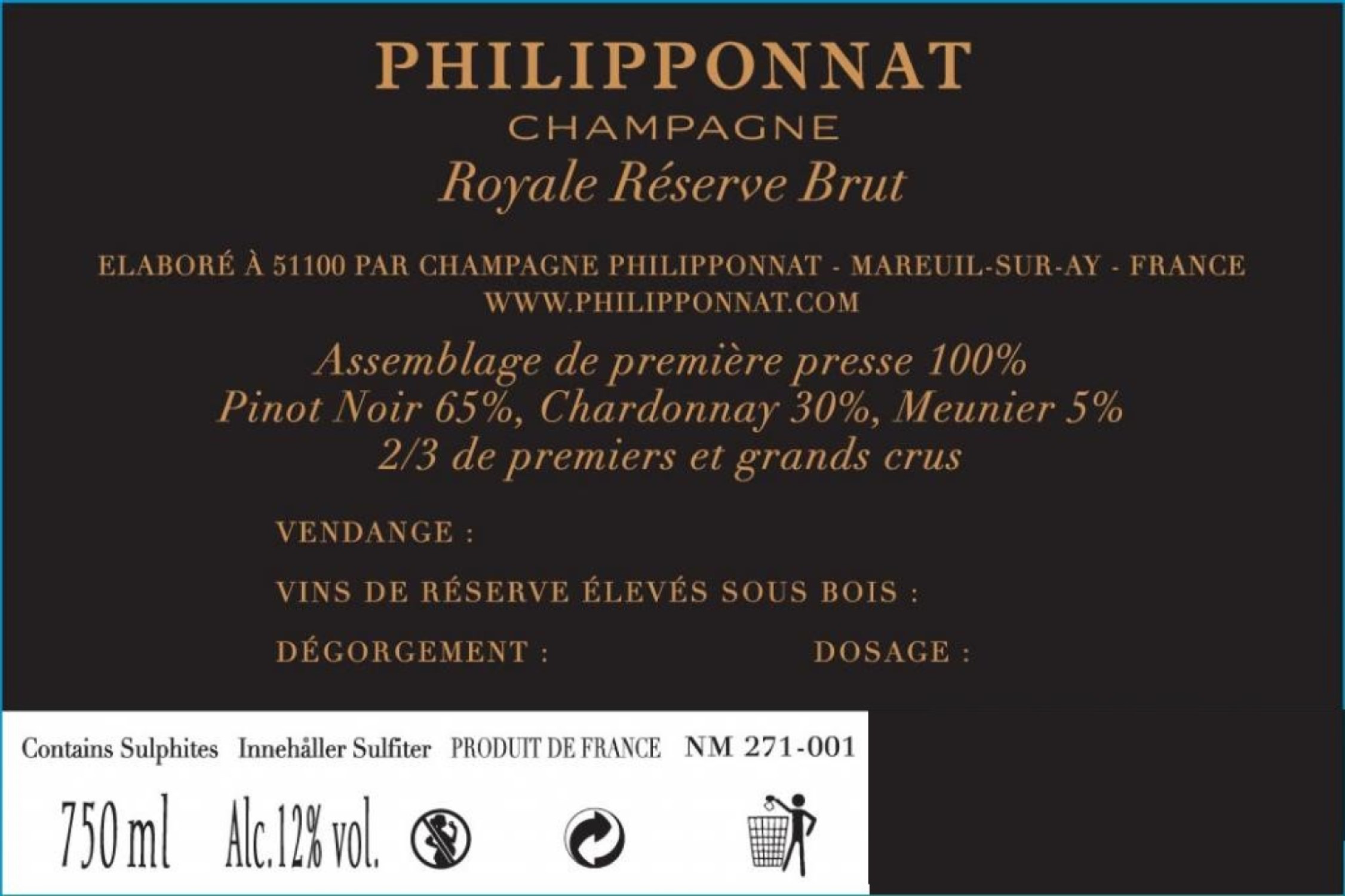 | Libellé | Champagne Philipponnat Royal Réserve - Brut - 75 cl |