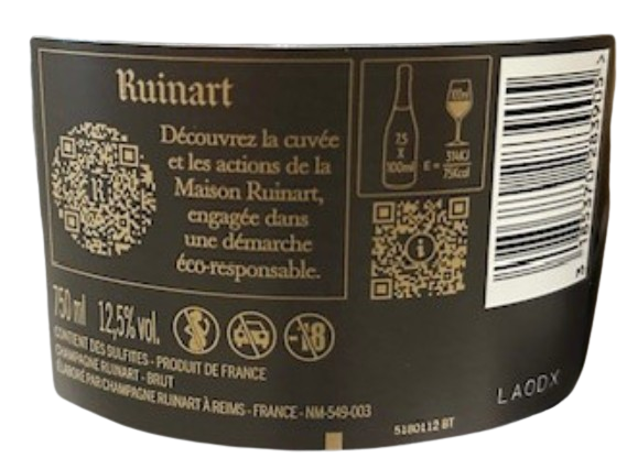 | Libellé | Champagne Ruinart, R de Ruinart - Brut - 75 cl - étiquette abîmée |