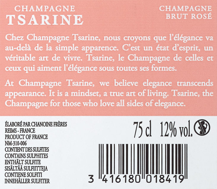 | Libellé | Champagne Tsarine Rosé - Brut Rosé - 75 cl |