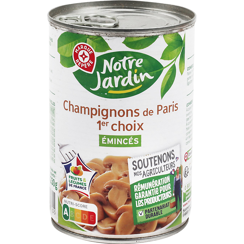 Champignons de Paris 1er choix, émincés NOTRE JARDIN
