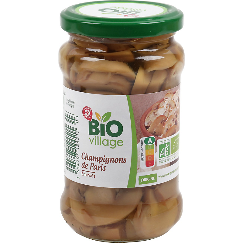 Champignons de Paris émincés - Produit issu de l'agriculture biologique BIO VILLAGE