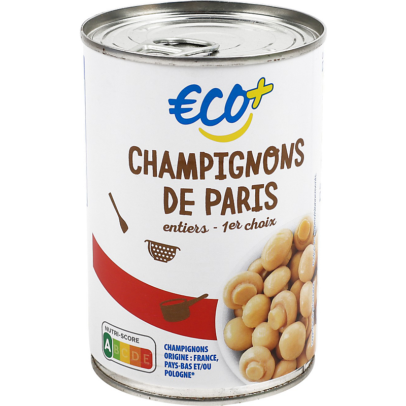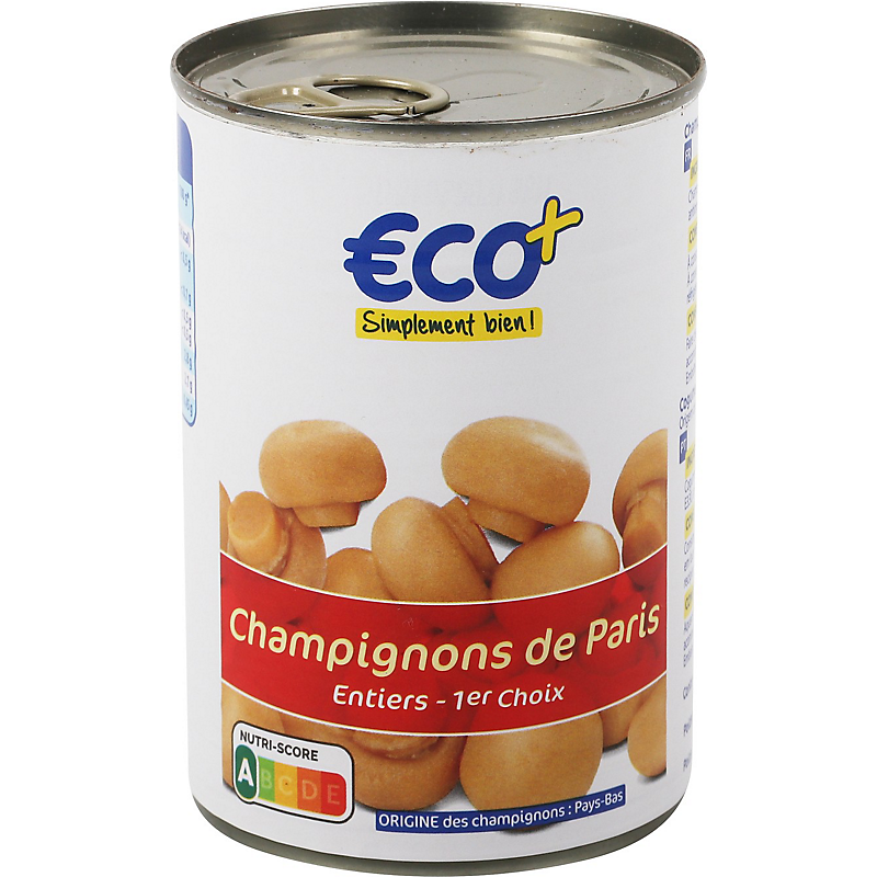 Ingrédients : Champignons de Paris, eau, sel, acidifiant : E330, antioxydant : E300.