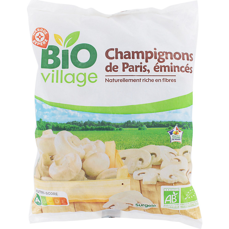 Champignons de Paris (Agaricus bisporus) émincés, issus de l'agriculture biologique, surgelés BIO VILLAGE