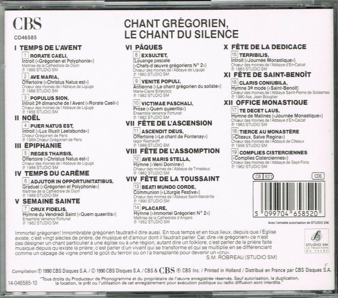 | Libellé | Chant Grégorien - Le Chant du silence |