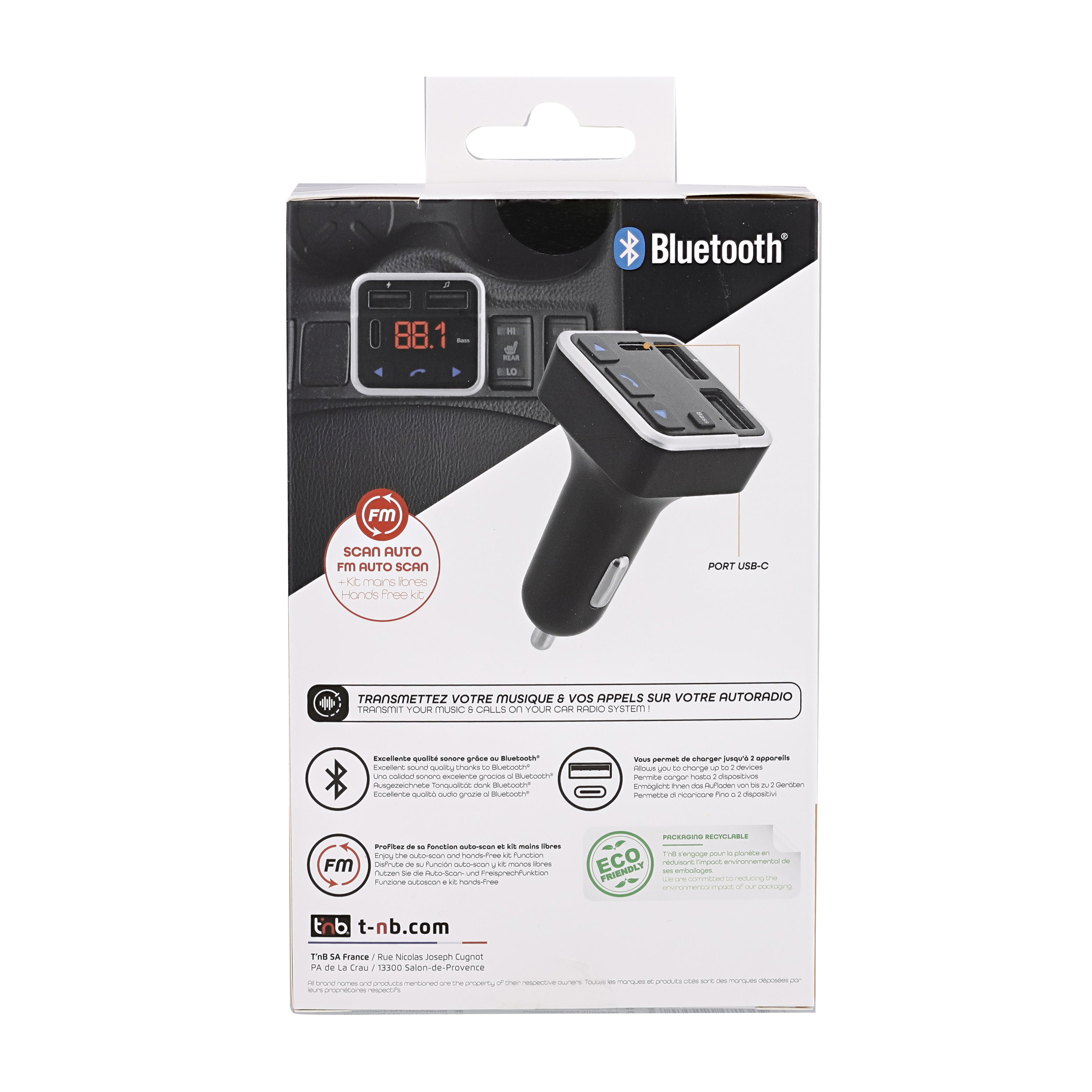 Transmetteur FM Bluetooth 4.2 avec kit mains libres Permet une écoute de la musique (format MP3/WMA) et des appels sur haut-parleurs du véhicule - Gestion de la musique et prise d'appel directe via boutons intégrés - Branchement sur prise allume-cigares et appairage fréquence radio de l'autoradio du véhicule - Fonction de recherche automatique des stations intégrée - Connexion du transmetteur possible avec d'autres appareils via Bluetooth, clé USB - Permet la charge d'un mobile en simultané via 2 ports USB 3.1 A max et le port USB-C. Tension d'entrée : 12-24V- Clé USB max 64 GB / USB-A + USB-C 5V/3.1A - Courant entrée 5V / 0.5 A max - Plage de fréquence FM 87.5 - 107.8 Mhz - Bluetooth 5.0 - Fréquence 2402-2480 MHz - Coul. gris