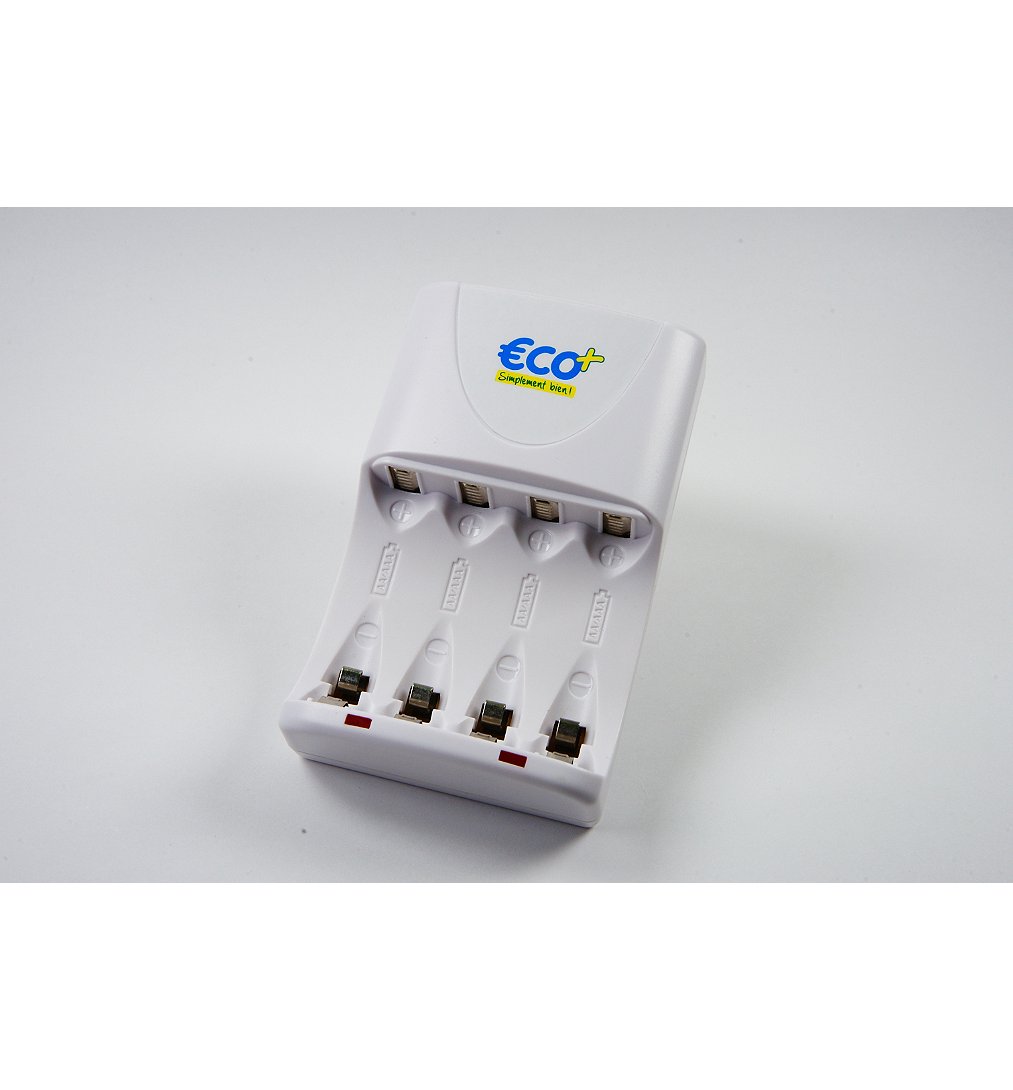 Chargeur basic de piles - Eco+ - Conçu pour recharger 2 piles HR6/AA ou 4 piles HR03/AAA - Protection contre la surchage - Arrêt automatique de sécurité - Indicateur Led de charge