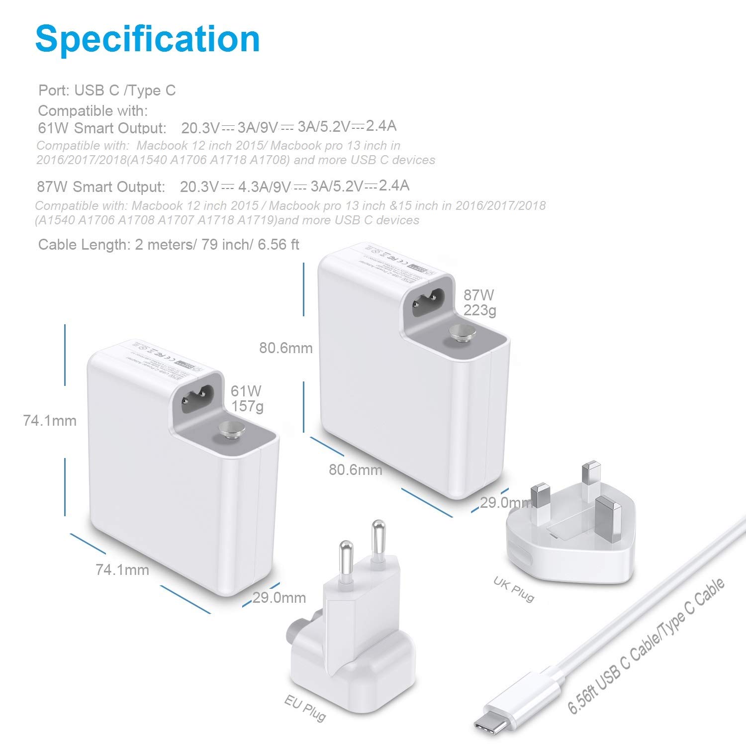 - COMPATIBILITÉ : Adapté pour chargeur Macbook Pro USB-C, adaptateur secteur USB-C 61W.Il est recommandé de le combiner avec votre MacBook Pro 13 pouces avec port USB-C pour une charge optimale (MacBook 13 pouces 2016, MacBook 12 pouces 2015 (A1534 A1706 A1707 A1708).