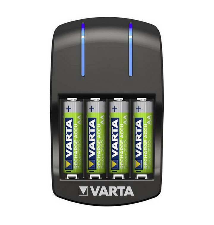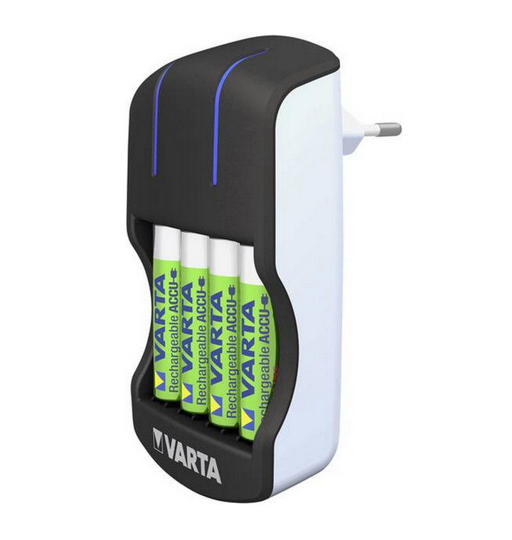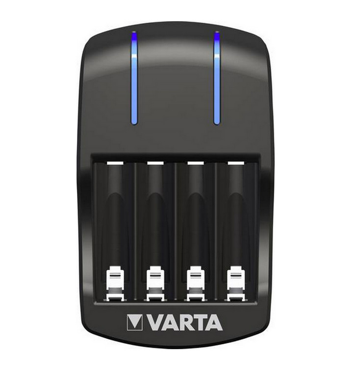 57647101451 - chargeur de piles avec 4 piles aa - Chargeur de piles Varta 57647101451 compact avec 4 piles AA. Il charge 2/4 accus AA/AAA avec usage mondial (100-240 V). - Type de produit : Chargeur de piles.