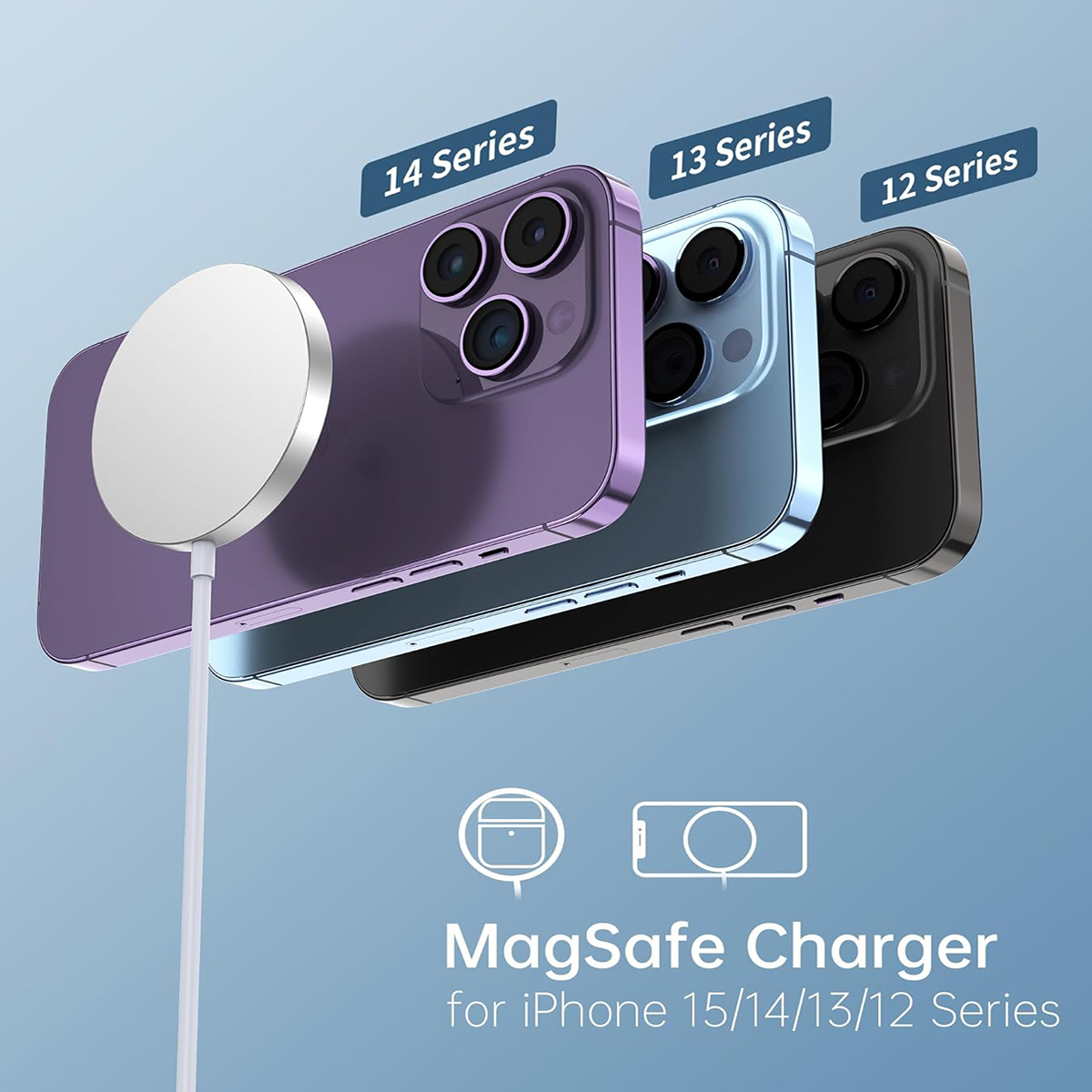 Chargeur induction 15W Magnétique Compatible MagSafe + adaptateur secteur pour iPhone 12 - iPhone 12 Mini-iPhone 12 Pro-iPhone 12 Pro Max- Blanc -Visiodirect - Ce Chargeur induction est une solution de charge sans fil plus rapide pour toutes les séries iPhone 12/13/14/15. Avec le chargeur MagSafe, la recharge sans fil est une simple formalité. Grâce à l’ajustement parfait des aimants, votre iPhone se connecte automatiquement au chargeur pour une recharge sans fil rapide à une puissance de 15 W maximum. Le chargeur MagSafe reste compatible avec la recharge Qi. Vous pouvez donc l’utiliser comme n’importe quel chargeur certifié Qi pour recharger sans fil votre iPhone ainsi que les modèles d’AirPods avec boîtier de charge sans fil.
