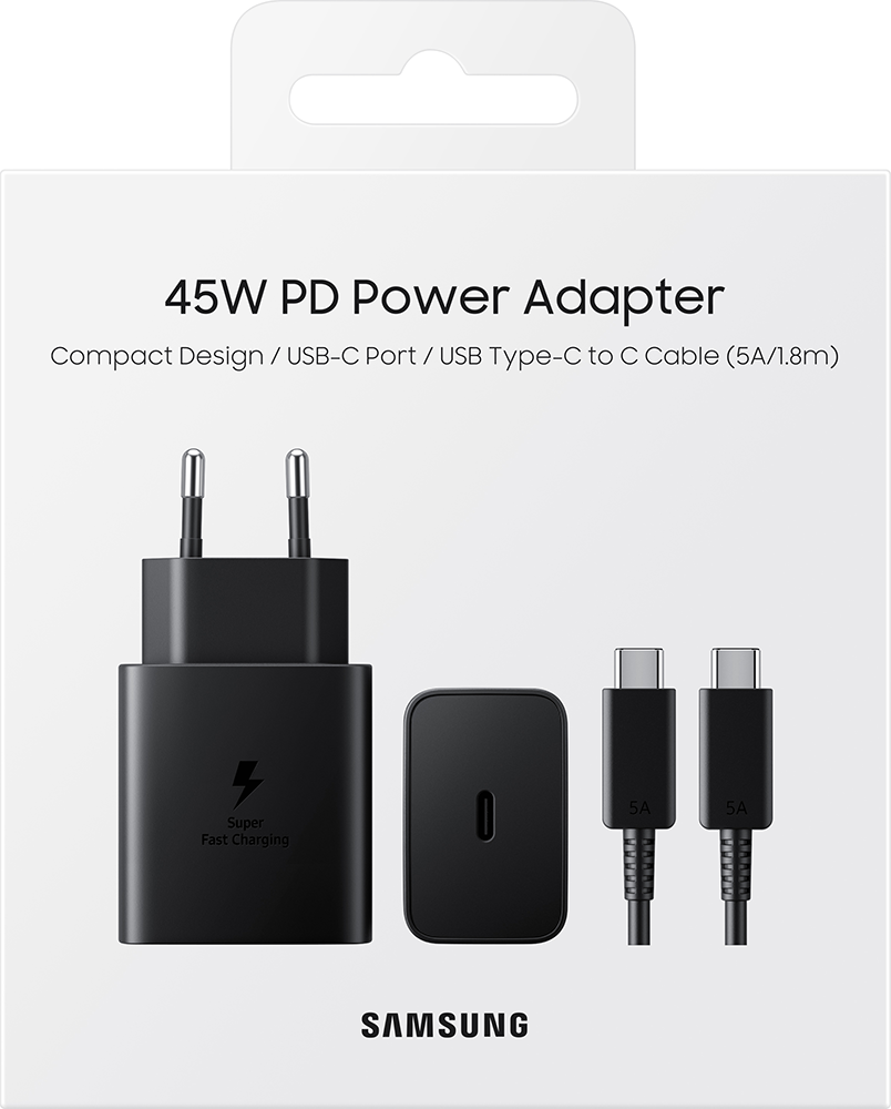 | Libellé | Chargeur maison 45W Power Delivery + Câble USB C/USB C Noir Samsung |