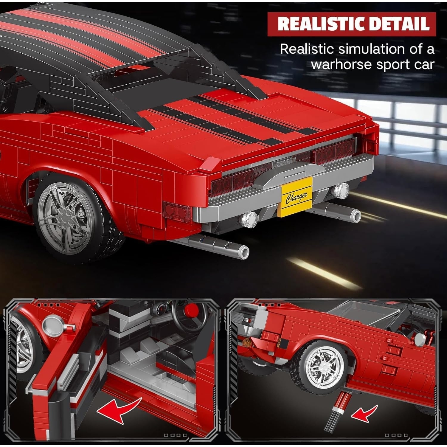 Mould King 10112 Chargeur Muscle Car - - Avec son look rouge et noir audacieux, ce modèle de muscle car apporte un style urbain authentique à votre étagère.Deux options de moteur interchangeables vous permettent de choisir entre un style classique et une esthétique haute performance, selon vos préférences. Les portes, le coffre et le capot peuvent être ouverts pour révéler des éléments détaillés de l'intérieur et du moteur. Un impressionnant projet de construction à l'échelle 1:12 pour tous ceux qui aiment l'histoire automobile américaine et apprécient les caractéristiques réalistes. - - - 1869 pièces - Dimensions : environ 37 x 15 x 9 cm - À partir de : 14 ans