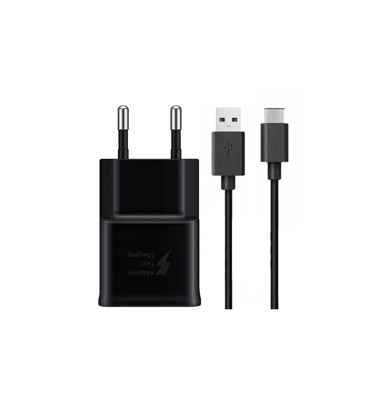 Chargeur rapide noir 15 watts Samsung Adaptative Fast Charging EP-TA200 + câble 120 cm Type C