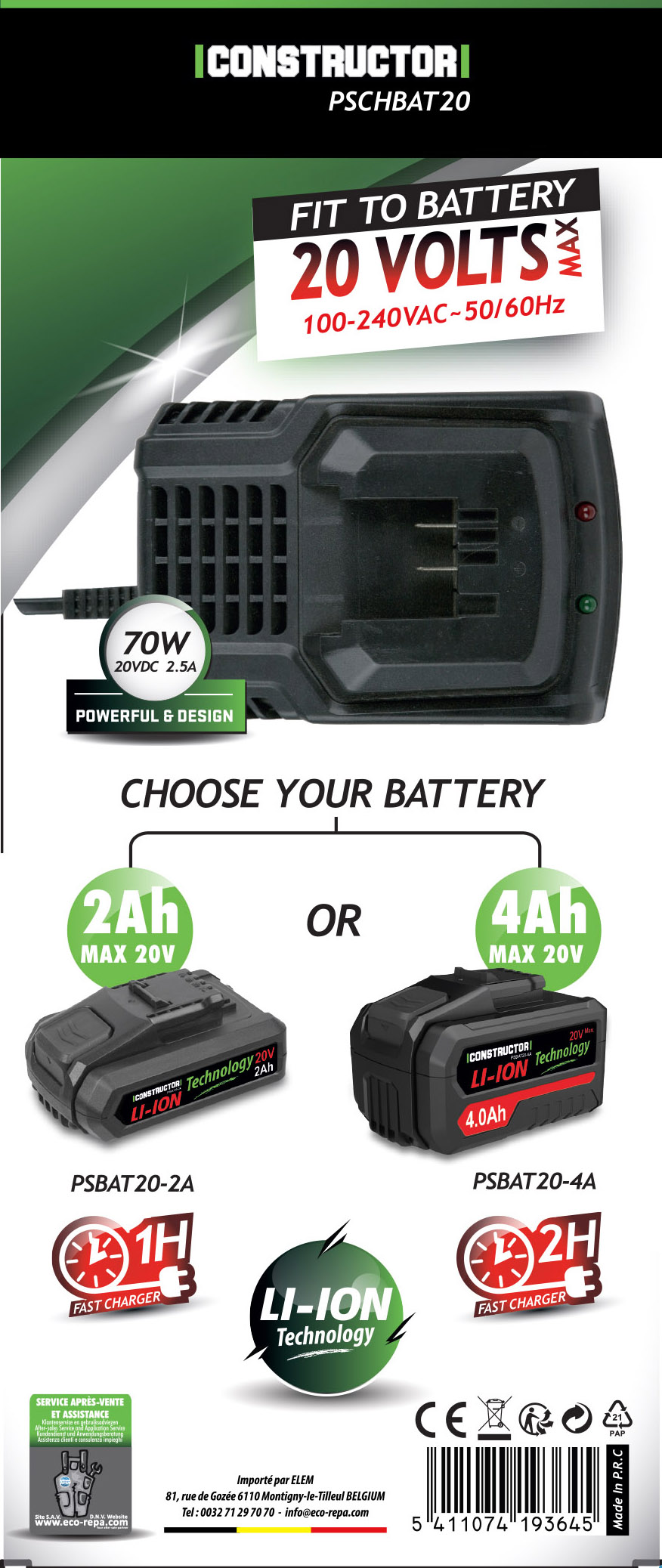 - Convient pour les batteries 20V max: PSBAT20-2A et PSBAT20-4A
